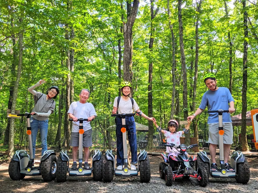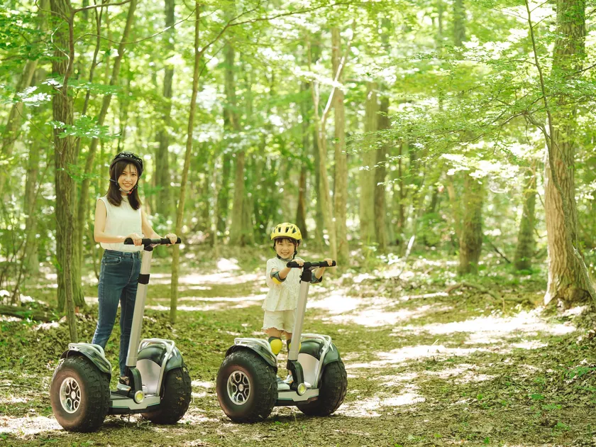 ジャイロライドパークは、セグウェイで有名な電動立ち乗りボード「ジャイロライド」で、オフロードの原生林をインストラクター無しで自由に駆け巡れる、全国初の施設です。