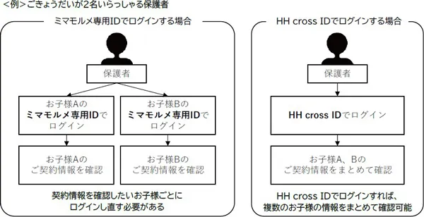 ※これまでは契約情報を確認したいお子様ごとに、ミマモルメ専用IDでログインし直す必要がありました。