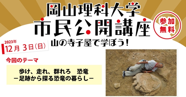 【岡山理科大学市民公開講座】歩け、走れ、群れろ 恐竜 -足跡から探る恐竜の暮らし-|日時:2023年12月3日(日)10:00~14:00 開催!参加無料