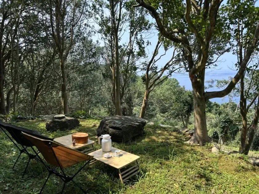 東シナ海の断崖絶壁に広がる7ヘクタールの斜面には、約2万本のヤブツバキが自生しており、花が見頃を迎える12~3月には野鳥たちのさえずりも。