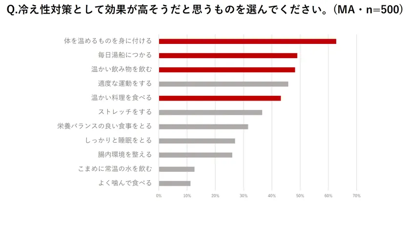 冷え性対策として効果が高そうだと思うものを選んでください。