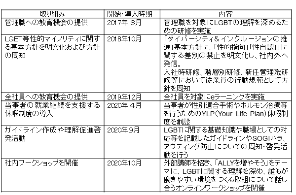 当社のLGBTに関する具体的な取り組みは以下の通りです。