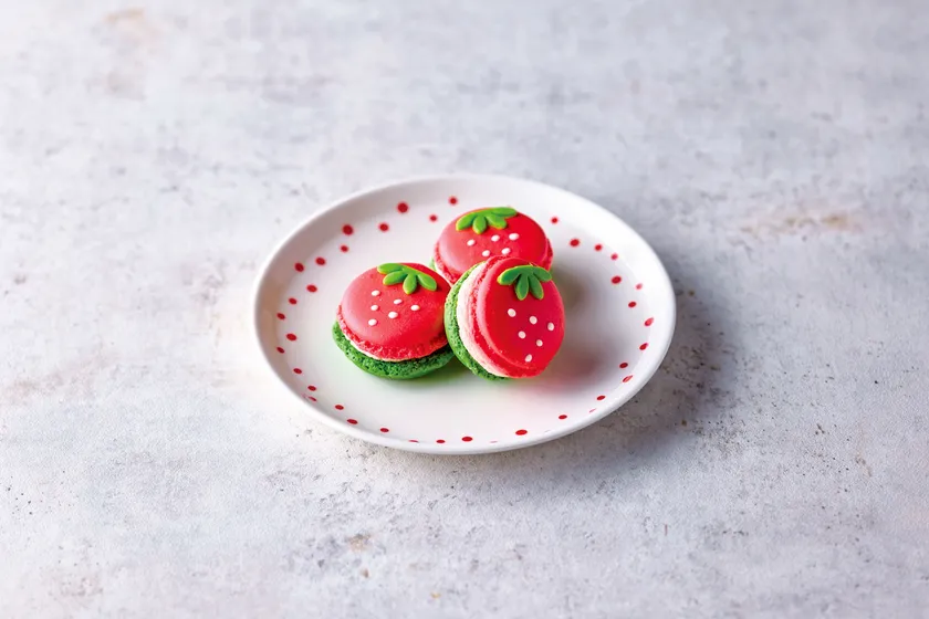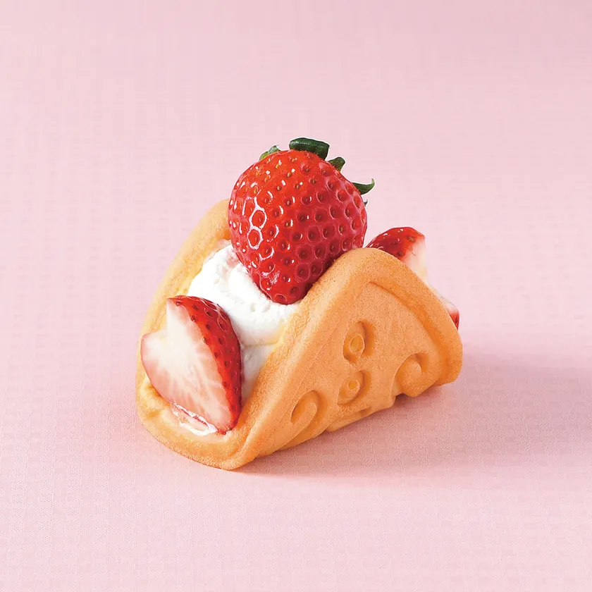 いちごクリームとあまおうピューレをサンドした、とろける味わい。いちごを模したデザインがキュート。