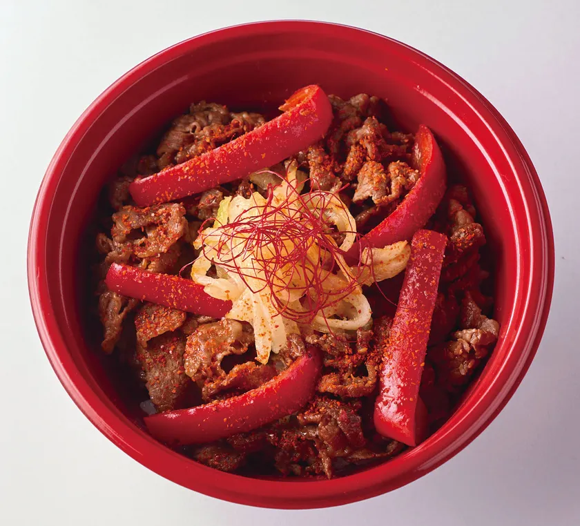 ピリ辛ダレに唐辛子を加えた辛口のプルコギ丼。