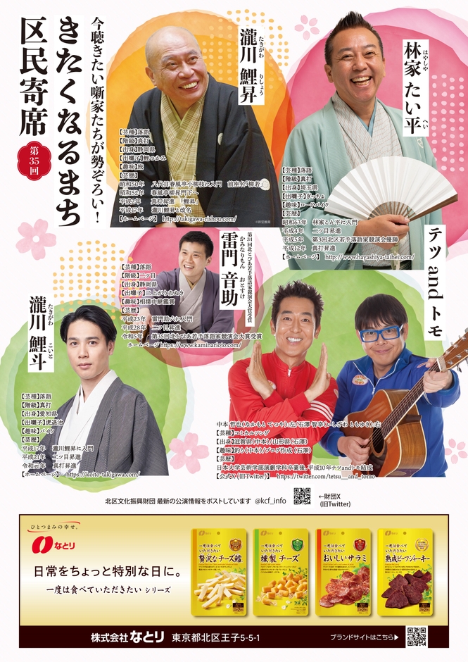 (公財)北区文化振興財団主催、『第35回きたくなるまち区民寄席』が2024年4月7日 (日)に北とぴあさくらホール(東京都北区王子1-11-1)にて開催されます。