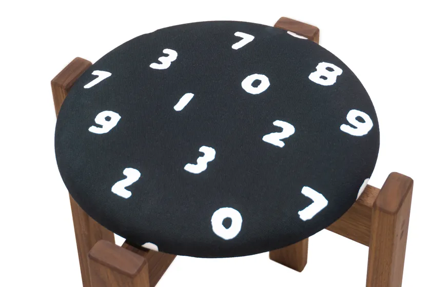 SOU・SOUの代表的なテキスタイルである、【 SO-SU-U 】の濡羽色(ぬればいろ)帆布をマスターウォールの人気スツール、【マークスツール】の座面へ張った限定モデルです。紡績から加工まで全てを国内で生産した日本製8号帆布[富士金梅(R)]を使用し、生地の染色は京都で行っています。ポップなテキスタイルと深い色味のウォールナットが、空間のアクセントになる特別なアイテムです。