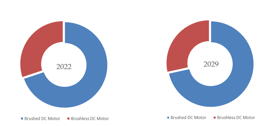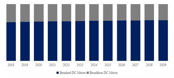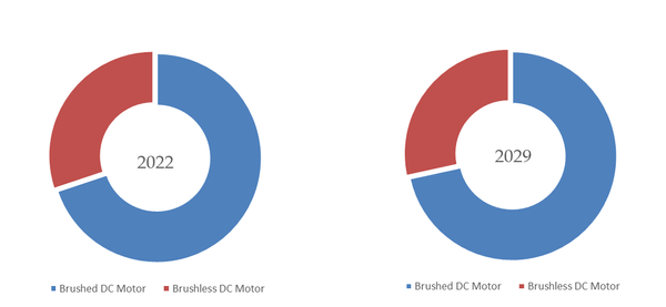 製品タイプ別では、ブラシ付きDCモーターが最大セグメントで、70%のシェアを占めている。