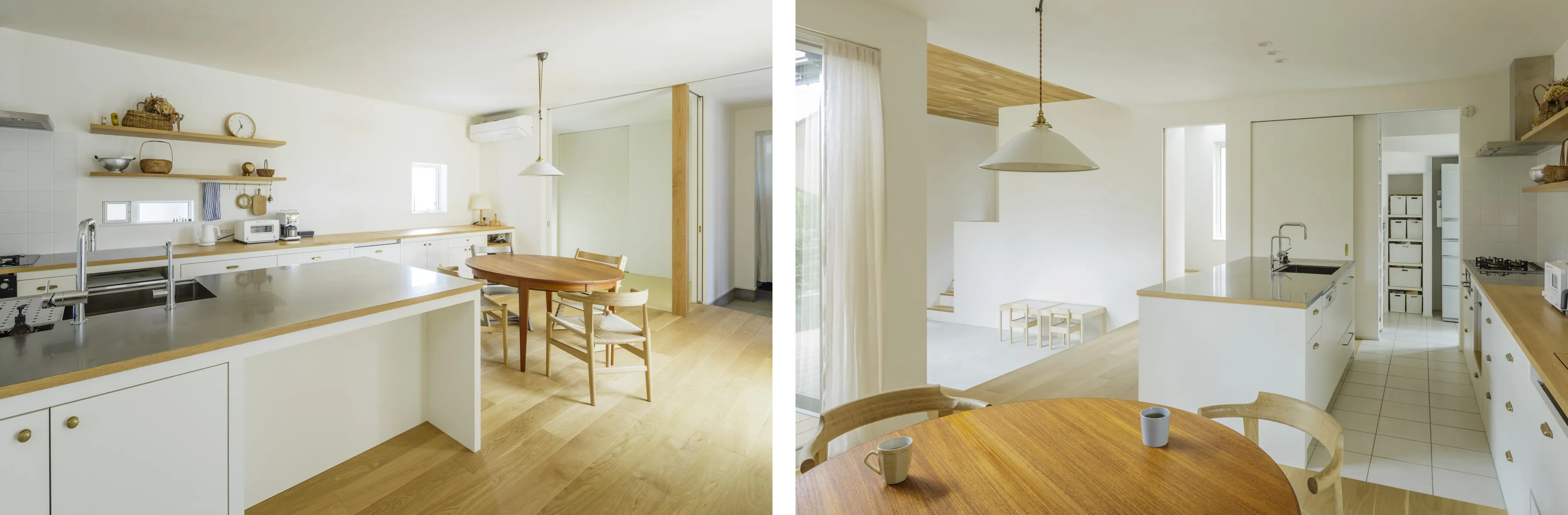デザイン家電以外はすべて収納した、すっきりしたキッチン・ダイニング