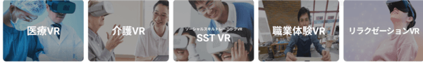 医療福祉スタッフの育成をする医療VR、介護VRを始め、障害者や患者向けのメンタルケア、就労支援ソーシャルスキルトレーニングなど、医療福祉に必要なVRカテゴリーがすべて揃っています。医療福祉業界で働くスタッフ向けの臨床教育はもちろん、患者向けの自立支援やリラクゼーションなど幅広い用途でVRトレーニングを提供することが出来ます。