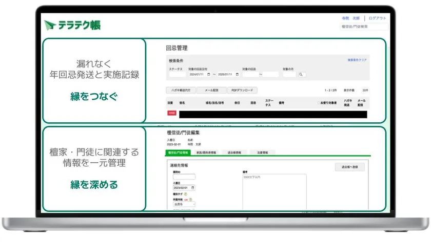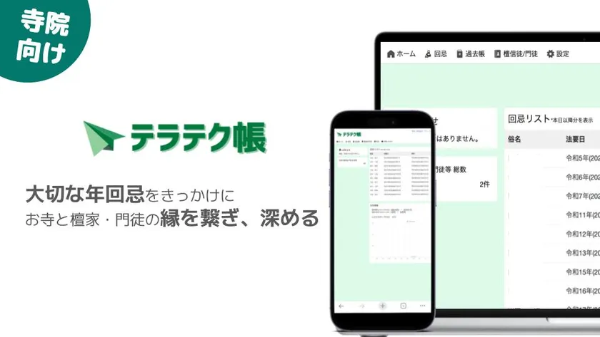 業界初*たった30秒で完結! 年回忌お便り発送特化の寺務管理サービス「テラテク帳」リリース