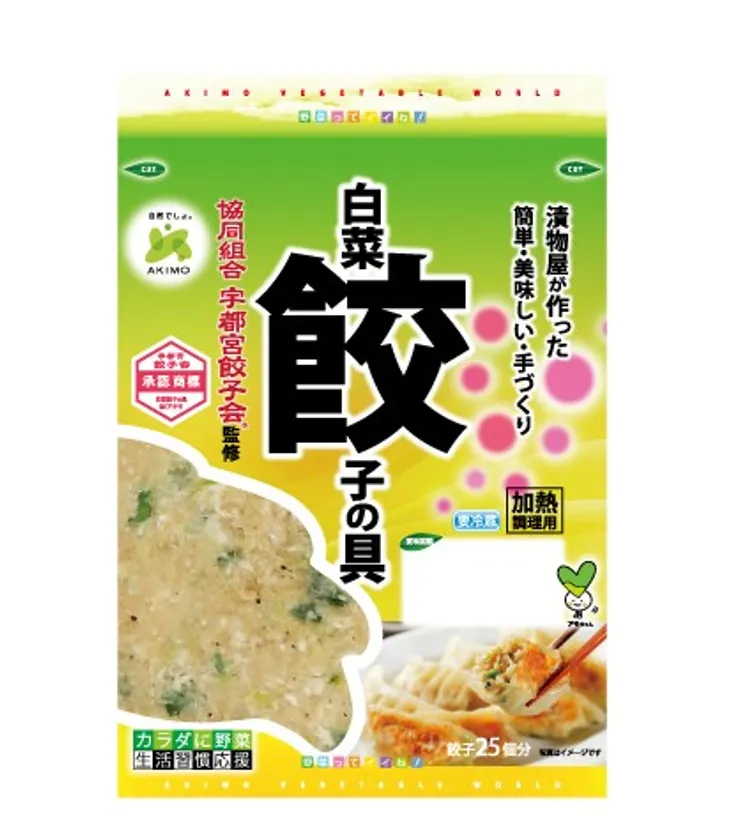 浅漬けをはじめとする野菜加工食品メーカーの株式会社アキモ(所在地:栃木県宇都宮市、代表取締役社長:秋本 薫)は、宇都宮餃子ブランドを牽引する協同組合 宇都宮餃子会(所在地:栃木県宇都宮市、代表理事:伊藤 太朗、専務理事兼事務局長:鈴木 章弘)監修のもと開発した『漬物屋が作った 簡単・美味しい・手づくり 白菜餃子の具』(以下『白菜餃子の具』)を、栃木県内をはじめとした関東甲信越、東北エリアのスーパーマーケットにて、2024年2月1日より新発売いたします。