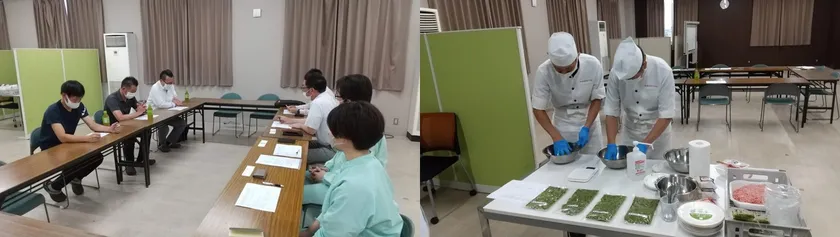 本製品使用による「野菜と肉の黄金比」を見出すため複数回の試作、パッケージデザインの検討など、半年以上にわたり実施されてきた宇都宮餃子会と当社による『白菜餃子の具』開発会議。
