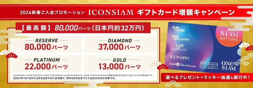 ・ICON SIAMなどSIAMグループで使えるギフトカード 最高8万バーツ相当