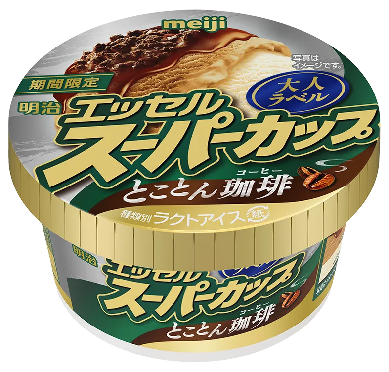 大人向け明治 エッセル スーパーカップ 大人ラベル「とことん珈琲」全国新発売! 1月29日(月)より新フレーバー登場! 素材にこだわった4層仕立ての贅沢アイス