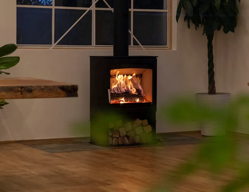ショールームの薪ストーブで癒されて