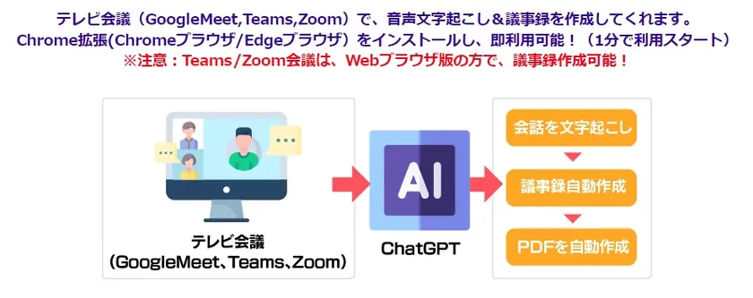 なお、Teams/Zoom会議は、Webブラウザ版で作成可能です。また、Teamsテレビ会議で議事録作成AIを利用する場合は、管理者の方の設定が必要です。