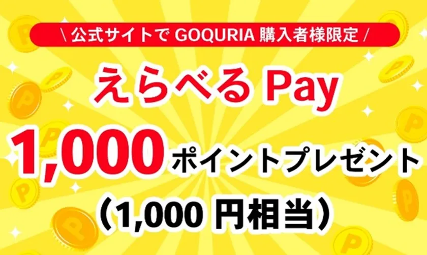 「公式ホームページよりGOQURIA(ゴクリア)購入で えらべるPay1,000円相当プレゼント」開催中!