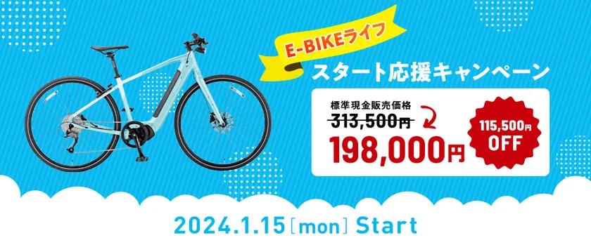 株式会社ミヤタサイクル(本社:神奈川県足柄上郡中井町、代表取締役社長:福田 三朗)は、E-BIKEと共に新たなサイクルライフのスタートを検討している皆様を応援するため、クロスバイクタイプE-BIKE「CRUISE i 5080」をお得にご購入いただける「E-BIKEライフスタート応援キャンペーン」を1月15日(月)より開始いたしました。