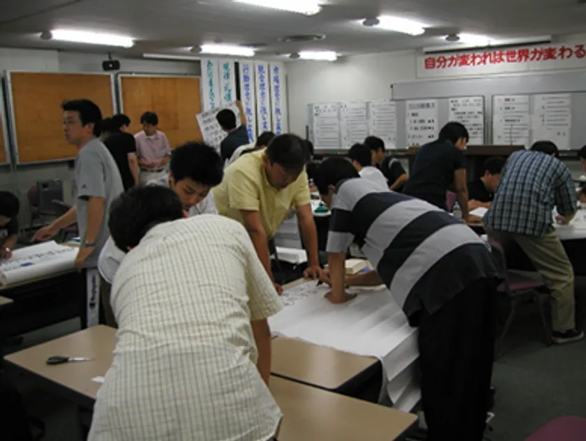 どこの会社でも、社員が「甘え」ています。今日も昨日の如く、明日も今日の如く「それでも給料は貰える」…会社を良くし、前進させるために何一つ動かそうとしない。この「甘え」がある限り、会社は1センチも進みません。なぜ「甘え」るのか…一つはその「意識」がないこと、全く教えていないからです。「会社とは何か」「会社はなぜ潰れるのか」「幹部は何をするべきか」「なぜ顧客第一主義は大切なのか」など…まず基本的なことが分かっていません。D2P幹部訓練は、これらの基本的な問題を、徹底して教えこみます。単なる知識としてではなく、「問題」に対する「解答」という形で、何回も書き直し、納得し、それが成果に結びつくまで、きびしく訓練します。それが「意識」を変え、会社を変える原動力になります。