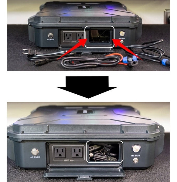 AC出力(×2):■100-120V/220-240V、■50/60Hz 1000W,サージ電圧 2000W