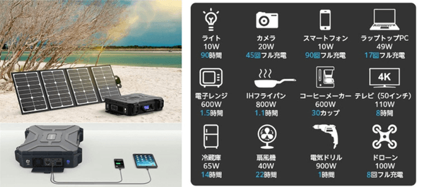 ミニ冷蔵庫は14時間、扇風機なら22時間、照明90時間。