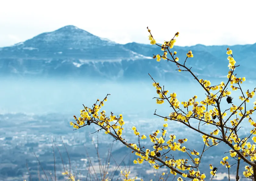標高497メートルの宝登山山頂一帯約15,000m2に、今シーズンから加わった新種のロウバイ(福禄寿)別名『宝登のかがやき』を含む5種類・計約3,000本のロウバイが植栽されています。晴れた日には山頂から武甲山、両神山、秩父の町並みなどが一望でき、ロウバイの濃厚な甘い香りとともに関東一のロケーションをお楽しみいただけます。