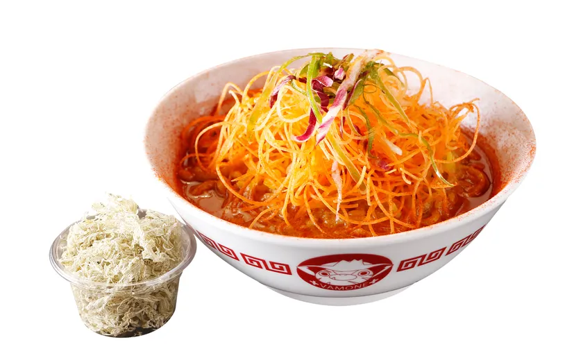 一部ラーメン店にて、アニメ作中に登場する「吸血野菜」をテーマに、野菜を使ったコラボ限定ラーメンをリレー形式で販売いたします。コラボラーメンは作中に登場する「ヴァモネさんどんぶり」で提供いたします。