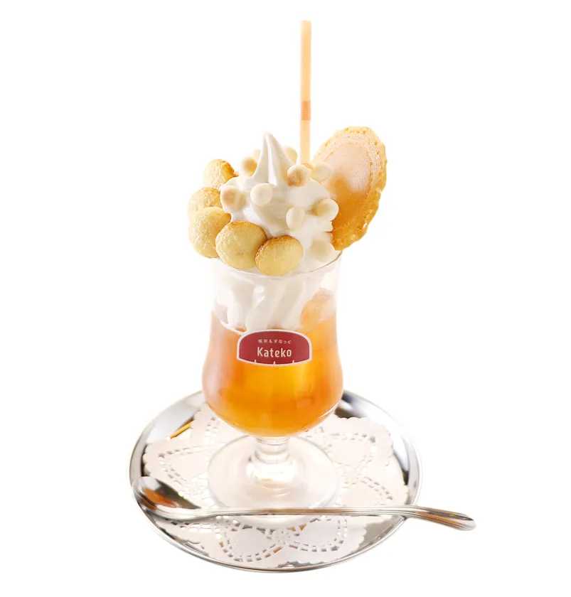 紅茶フロートにジョンの好物・ソフトクリームとパンケーキをイメージした焼き菓子をトッピング。愛らしいマジロ一色なフロートです。