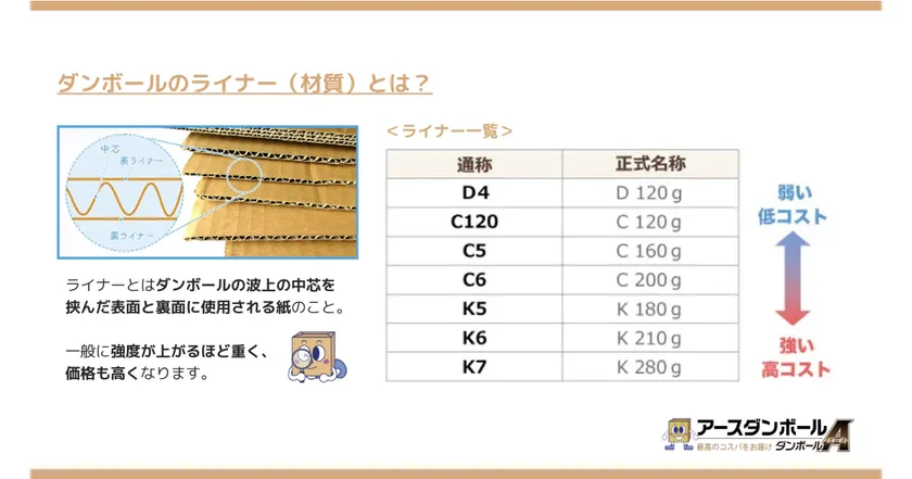 ダンボールの強度とライナー(材質)