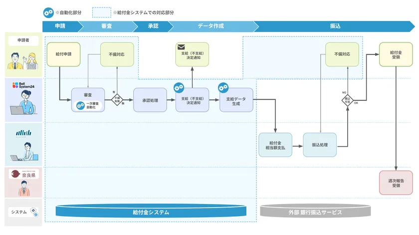 株式会社Blueship(本社:東京都渋谷区、代表取締役:慶松 大海、以下:Blueship)は、奈良県の「県内中小企業等の賃上げ促進事業(以下:本事業)」において、「事業者がストレスなく手続きできる申請方法の提供」や「正確・安全・迅速な支給」を目指し、申請受付から振込データ作成までオンラインで完結するためのシステム構築および同事務手続き運営業務を受託しました。コンタクトセンター業務運営の多数のノウハウを持つ、株式会社ベルシステム24(本社:東京都港区、代表取締役 社長執行役員:野田 俊介、以下:ベルシステム24)が、申請受付から審査、問い合わせ対応等の申請者との接点に関わる業務を一貫して実施します。