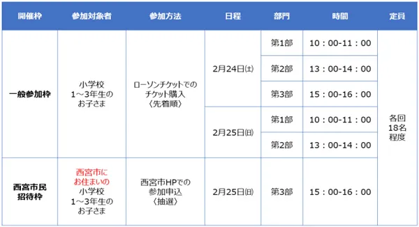 参加方法:一般参加枠と西宮市民招待枠で異なります。