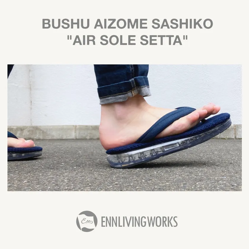 「生まれは日本、想いと価値を。」のコンセプトのもと古くから剣道着などに使用されてきた日本が誇る伝統の織物「藍染」と「刺し子生地」を使用したモノ作りをしている ENN株式会社(所在地:宮城県仙台市青葉区上杉1-8-19副都心ビル上杉百番館2-F)は、「武州正藍染刺子“エアー雪駄”」を2024年1月20日(土)10:00より応援購入サービスMakuakeにて先行発売いたします。