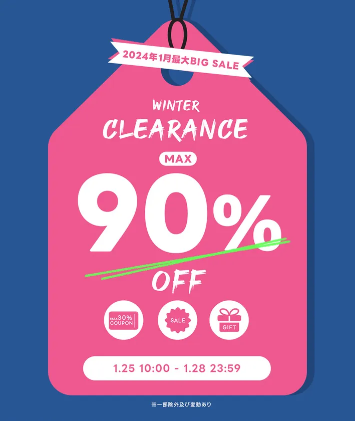 時間制限を設けたデイリークリアランス、人気アウターをピックアップしたアウタークリアランスセールなど、最大90%オフでお買い物いただけるイベントを複数ご用意しました。
