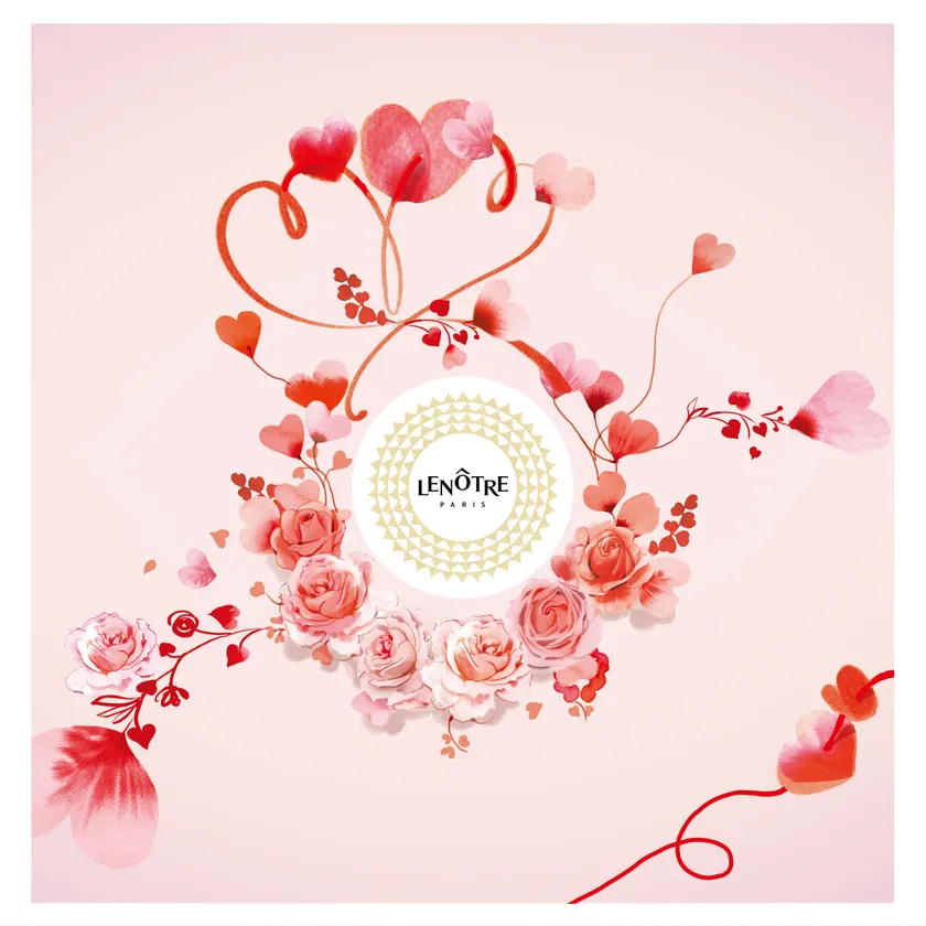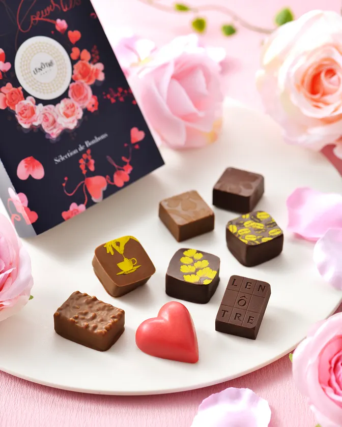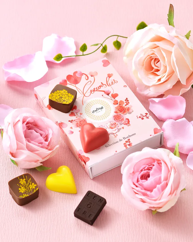 LENOTRE <ルノートル>のバレンタインの テーマは「つながる心」 ハート形のバラで表現したデザインの 限定BOXに新作ボンボンを詰め合わせました