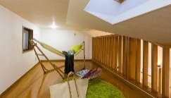 リビング・ダイニングと続き間の和室を合わせれば28畳大。ロフト(屋根裏部屋)も付き、屋根窓からは満天の星を楽しめます。