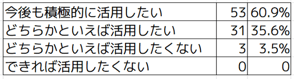 〇「今後も積極的に活用したい、どちらかといえば活用したい」