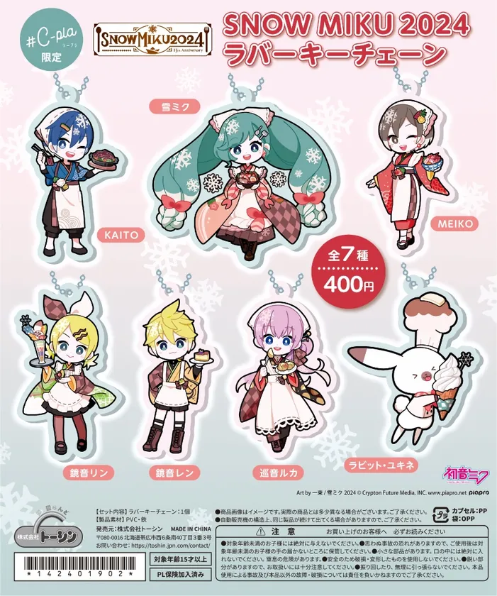 カプセルトイ専門店「#C-pla」の運営などアミューズメント事業を展開する株式会社トーシン(本社:北海道帯広市、代表取締役:宮本 達也)は、2024年2月4日より「雪ミク(初音ミク)」のフェスティバル「SNOW MIKU2024」とコラボし、北海道内店舗にて2024年デザインSNOW MIKUの限定商品を先行発売いたします。また一部店舗では、購入特典として15年分の雪ミクのデザインがあしらわれた「限定ホログラムシール」プレゼントキャンペーンを実施いたします。