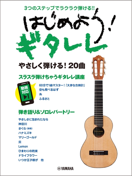 入門レベルの方は少ないコードでかんたんに弾けるようにコンパクトにアレンジされた弾き語り譜、テレビやCMなどで耳にしたことのある印象的なフレーズが初級レベルでも楽しめるちょいネタ、中級レベル以上の方にはオリジナルの音源と一緒に演奏できるフルサイズアレンジ、さらにステップアップをめざしたいギタレレソロまで盛りだくさん!