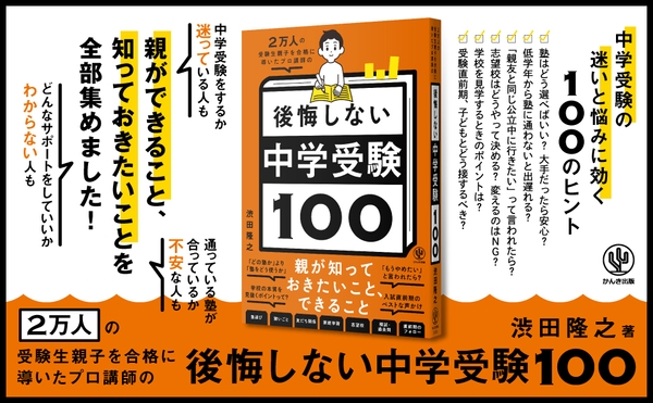 株式会社かんき出版(本社:千代田区 代表取締役社長:齊藤龍男)は、『2万人の受験生親子を合格に導いたプロ講師の 後悔しない中学受験100』(渋田 隆之/著)https://kanki-pub.co.jp/pub/book/details/9784761231002を2023年9月22日より全国の書店・オンライン書店等(一部除く)で発売いたします。