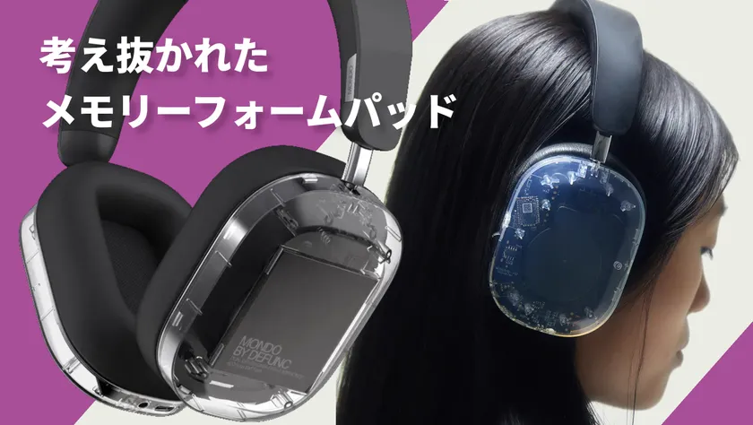 無機質なデザインと柔らかさの融合。抜群の着け心地に加えて、物理的に外音をシャットアウトするパッシブノイズキャンセリングを採用。