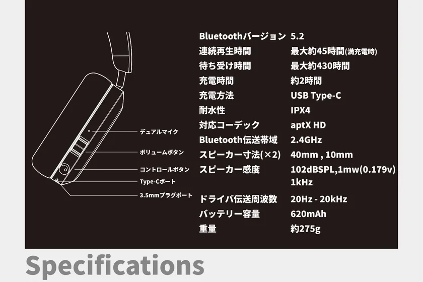 Bluetoothバージョン :5.2