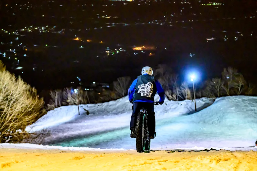ナイター照明で照らされたゲレンデをファットバイクやマウンテンバイクでダウンヒルするアクティビティ「雪ちゃりナイター」を、2024年1月27日(土)、2月3日(土)、2月10日(土)、2月17日(土)、2月24日(土)の期間限定で開催しています。