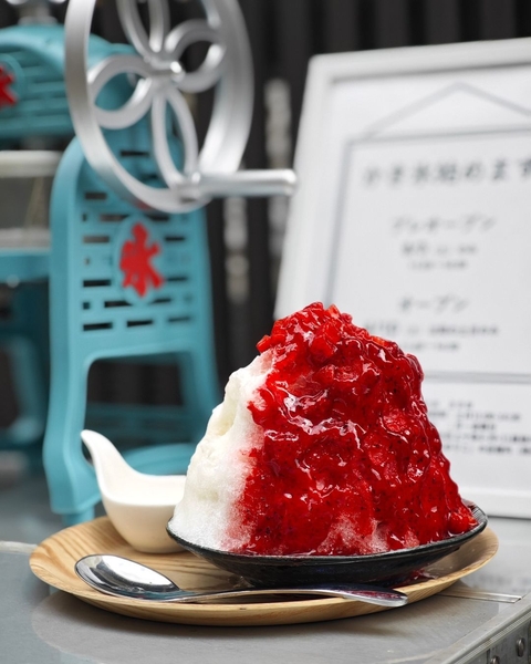 手作りの練乳と酸味のあるいちごソースが絶妙にマッチした、シンプルかつ濃厚なかき氷。練乳が苦手な方は、リクエストに応じて抜くことも可能です。