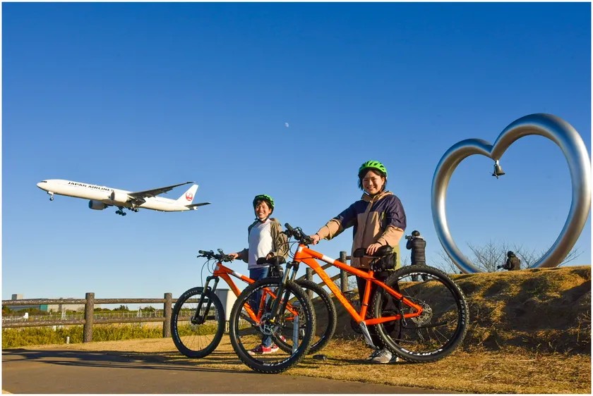 成田国際空港の滑走路から約600mの場所にあり、間近で飛行機を見ることができる「ひこうきの丘」は、サイクリングの途中に立ち寄りたい絶景スポットです。迫力ある飛行機の離発着を楽しめるのはもちろん、飛行機と愛車のコラボ写真の撮影も可能!また、周辺には季節ごとに花が咲き、飛行機が飛ぶ青い空をバックに春には菜の花、夏にはひまわりをカメラに収めることもできます。