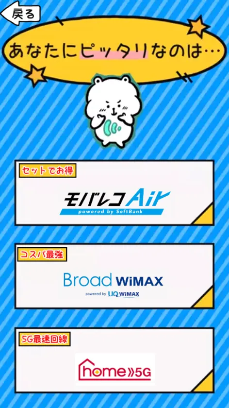かんたんに短い時間であなたにピッタリのインターネット回線が分かる診断コンテンツになっています。