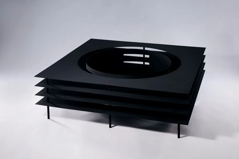 工業素材の三次元的な立体構造であり、等間隔に積み重ねられたプレートにより構成されたオブジェクトはドナルド・ジャッドにインスパイアされ生み出されました。作品でもなく製品でもないそれ自体が自律した物体として存在する純粋プロダクトを目指して製作されました。