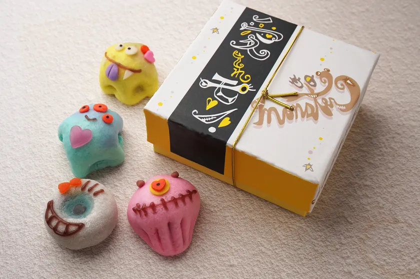 ポップでキュートな目にも鮮やかなモンスター。その正体はおまんじゅうと求肥でできた和菓子!中にはつぶあん、こしあん、チョコ、練乳いちごみるくなど4種のあんが詰まっています。明治34年の創業以来、飛騨高山で愛される『稲豊園(とうほうえん)』では「伝統製法をベースにして新しい和菓子を創ること」を大切に和菓子作りに取り組んでおり、これまでもハロウィンやお盆の期間に妖怪やおばけの和菓子を発売。当店のお客様に加え、SNSで予想以上の反響をいただいた事から初のバレンタイン&ホワイトデー限定商品として発売に至りました。