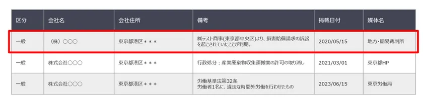 ウェブサービス型のコンプライアンス・チェックツール 2024年1月16日より、提供データを拡充 ~法人に対する民事訴訟データを網羅~