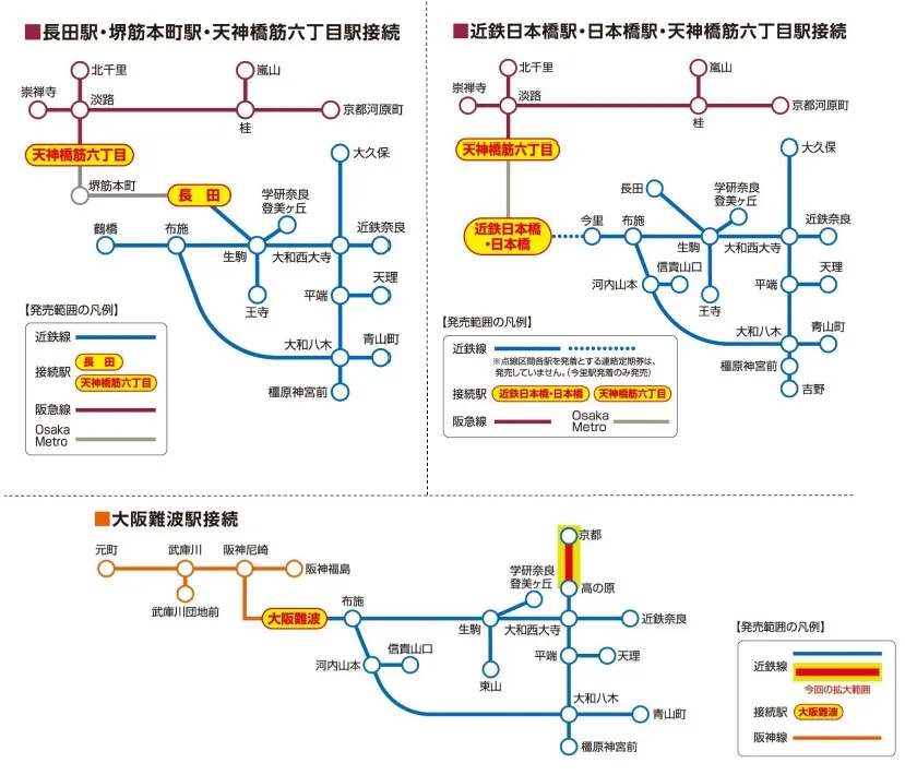 今回新たに発売開始およびご利用エリア拡大となる連絡定期券は、近鉄の定期券自動発売機での発売となります。(阪急、Osaka Metroおよび阪神の定期券発売箇所では発売しません)