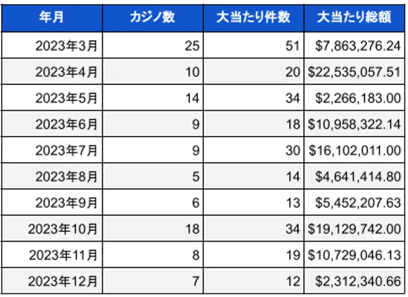 2023年12月時点での米国カジノのジャックポット当選件数と総額01